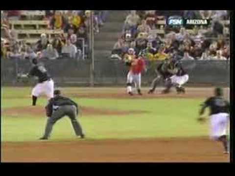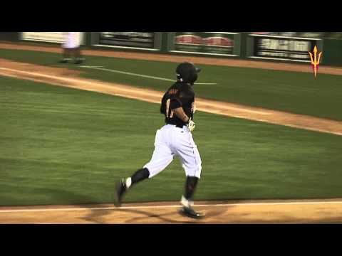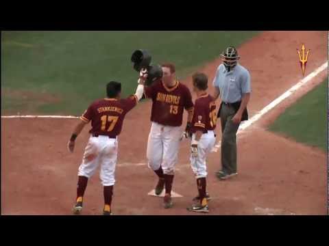Arkansas center fielder Brett Eibner hits a game-tying home run with two outs and two strikes in the ninth inning of the Razorbacks' super regional game at Arizona State on June 13, 2010. Arizona State won 7-5 in 12 innings to advance to the College World Series.