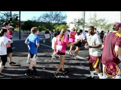 Sun Devil student-athletes volunteered went to downtown Phoenix to volunteer for the 2011 Race for the Cure. The women's basketball team, several football players and the entire student-athlete freshman class manned a water station while the softball team ran in this special and important event.